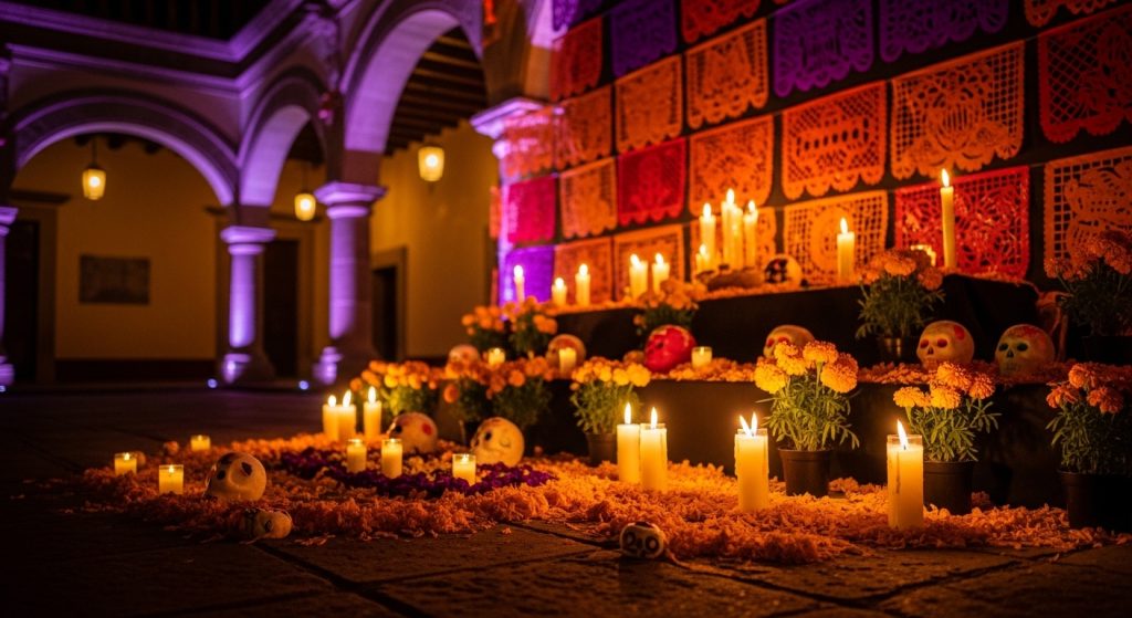 Oaxaca tiene una de las celebraciones más completas para el viajero. Aquí conviven la intimidad de los altares domésticos con una agenda cultural muy visible: comparsas, tapetes, exposiciones, mercados, ofrendas monumentales y visitas a panteones en barrios y pueblos cercanos.